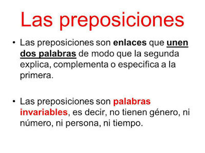 La preposición es una palabra que relaciona los elementos de una oración o sirve de nexo entre ellos. Las preposiciones pueden indicar origen, procedencia, destino, dirección, lugar, medio, punto de partida, motivo, etc.